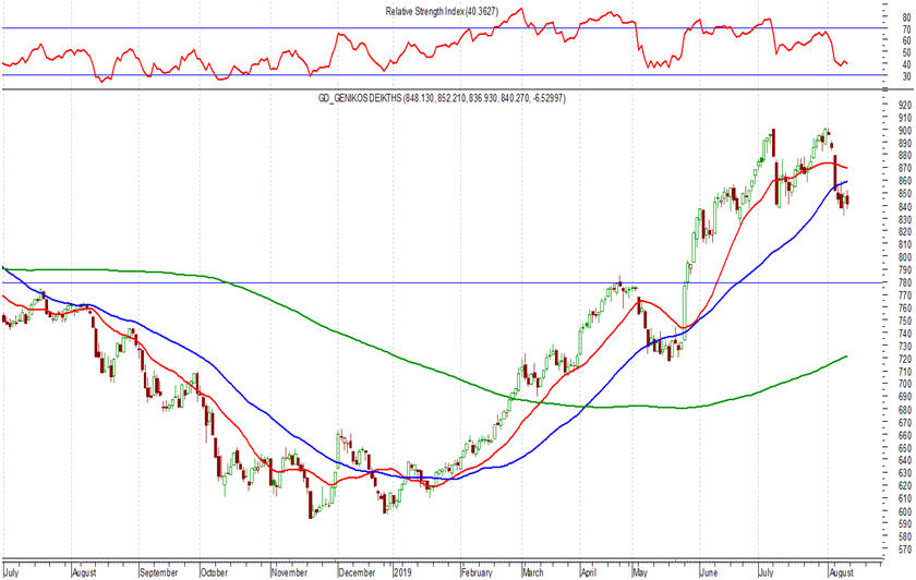Αν και βρισκόμαστε στην πλέον νεκρή εβδομάδα του καλοκαιριού. Αλλά και της χρονιάς, με βάση τους τζίρους των προηγούμενων ετών. Η αλήθεια είναι ότι οι επόμενες συνεδριάσεις θα είναι κρίσιμες – οριακές, με τη διαγραμματική εικόνα να επιβαρύνεται όλο και πιο πολύ. Ο ΓΔ λοιπόν την Παρασκευή έκλεισε στις 840,27 μονάδες, στα όρια δηλαδή των καθοριστικών 840 μονάδων. Και θα πρέπει ο δείκτης να μη χάσει τις 840 μονάδες, αφού όπως συνεχώς γράφουμε στο www.greekfinanceforum.com. Οριστική απώλεια τους θα οδηγήσει την αγορά στα επίπεδα των 810 – 800 ή και 790 μονάδων.