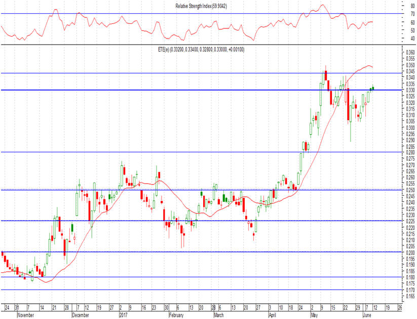 Στα 0,33 ευρώ (+0,30%) έκλεισε χθες η μετοχή της ΕΤΕ, με την