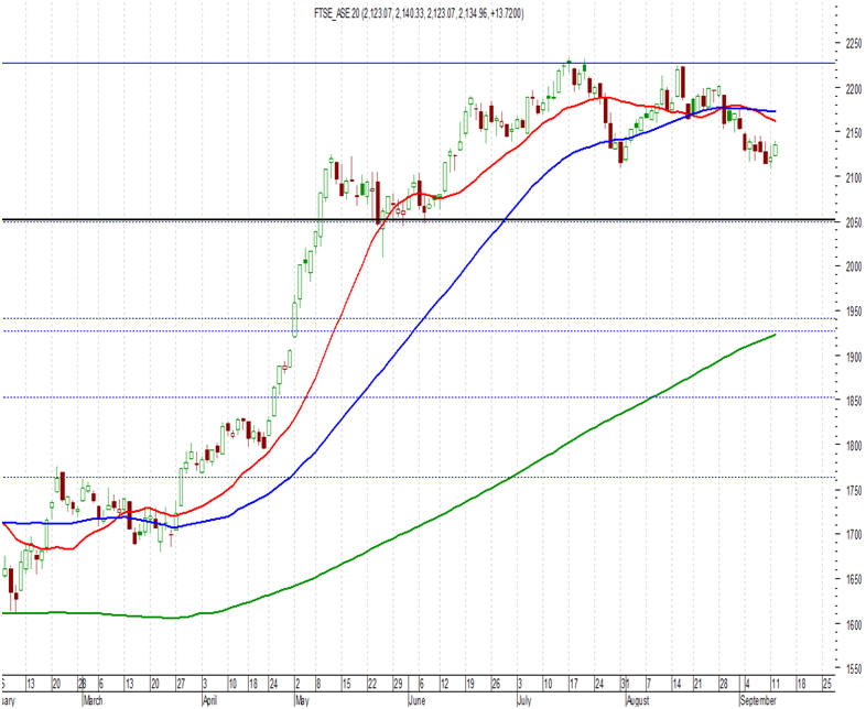 μονάδων (κλείσιμο 2.134,96 μονάδες), στα όρια των οποίων