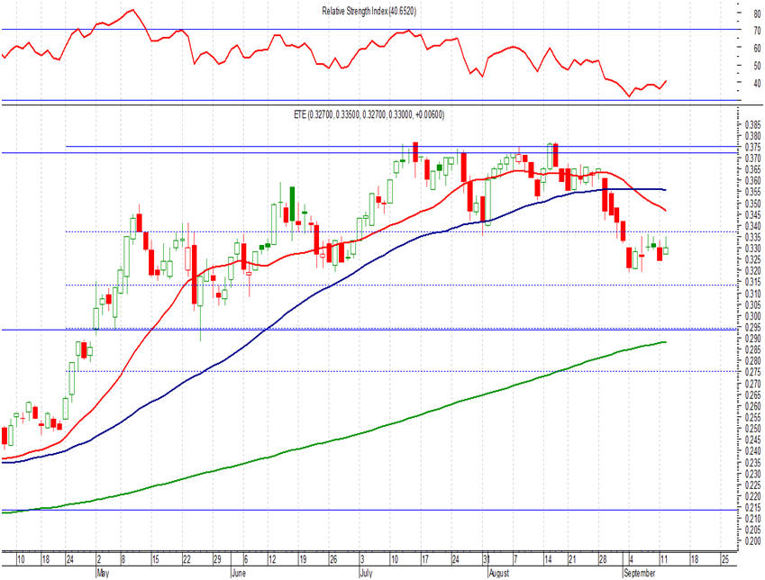 επόμενες στηρίξεις στα επίπεδα των 0,30 ευρώ επίπεδα, 0,292