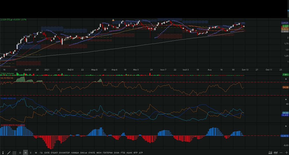 Στα 2,529 ευρώ έκλεισε η ΕΤΕ (+1,57%), με βασικό στόχο να