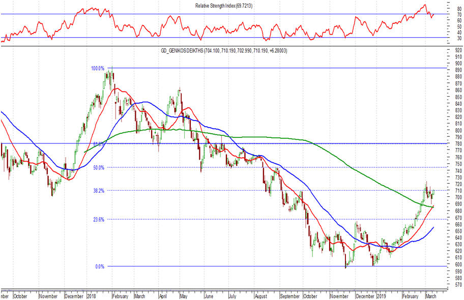 700 – 710 μονάδων, με επόμενο στόχο σε αυτό το σενάριο τα
