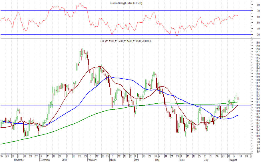 Κλείνοντας και με την αγορά να προσπαθεί να βρει στηρίξεις στα μη – τραπεζικά χαρτιά. Όσον αφορά τον ΟΤΕ, αυτός είχε χθες μια κακή συνεδρίαση (10,88 ευρώ, -3,29%), μετά από μια περίοδο κάποιων εβδομάδων που  η μετοχή τα είχε πάει σχετικά καλά. Το κλειδί είναι η μετοχή να επιστρέψει υψηλότερα των 11,00 – 11,20 ευρώ. Θα επαναλάβουμε πως με βάση αυτήν την παραμονή , η μετοχή είναι ικανή να κάνει σπουδαία πράγματα και πάνω από όλα η αγορά να βρει σε επιλεγμένα μη – τραπεζικά χαρτιά, στηρίξεις.  Από την άλλη πλευρά, οι επόμενες στηρίξεις είναι στα επίπεδα των 10,60 - 10,70 ευρώ και κυρίως των 10,40 - 10,50 ευρώ, στηρίξεις οι οποίες σε καμία περίπτωση δε θα πρέπει να χαθούν.
