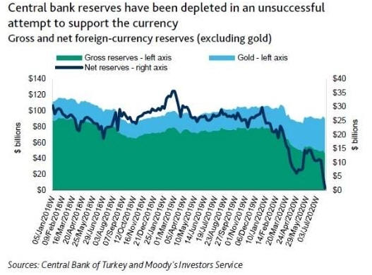τα καθαρά συναλλαγματικά αποθέματα της Τουρκίας βρίσκονται
