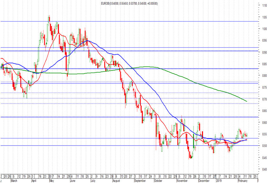 Με κέρδη 0,93% έκλεισε χθες η μετοχή της Eurobank, στην οποία συνεχίζεται η μεγάλη δραστηριότητα στα παράγωγα και ο αυξημένος δανεισμός τίτλων (αυξάνονται οι short θέσεις – αν και το πιθανότερο είναι πως αυτό συνδέεται με την επικείμενη συγχώνευση της τράπεζας με την Grivalia). Διαγραμματικά και με τη μετοχή να κλείνει χθες στα 0,545 ευρώ (υψηλό ημέρας 0,5545 ευρώ), το μεγάλο στοίχημα είναι η παραμονή υψηλότερα των 0,52 – 0,53 ευρώ, στηρίξεις μεγάλης σημασίας όχι μόνο για τη βραχυπρόθεσμη, αλλά και τη μεσοπρόθεσμη τάση της μετοχής. Με βάση αυτήν την παραμονή, η μετοχή μπορεί ανά πάσα στιγμή να κάνει την υπέρβαση και να κινηθεί προς τα επόμενα σημαντικά επίπεδα. Και συγκεκριμένα στις αντιστάσεις στα επίπεδα των 0,58 - 0,59 και 0,61 ευρώ, όπου θα επαναξιολογηθεί η κατάσταση, αφού σε αυτό το σενάριο θα υπήρχαν προοπτικές για ακόμη υψηλότερες τιμές.