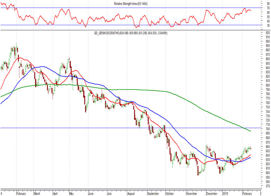 Ξέροντας ότι μιλάμε πάντα για το ρηχότατο ελληνικό χρηματιστήριο. Με τις αρκετά λίγες και σε πολλές περιπτώσεις χειραγωγούμενες συναλλαγές. Ωστόσο θα εκφράσουμε για ακόμη μια φορά τη συγκρατημένη μας αισιοδοξία πως βραχυπρόθεσμα (και με την προϋπόθεση πως δε θα συμβεί κάτι πολύ απρόοπτο διεθνώς), η αγορά μπορεί να κάνει την υπέρβαση. Μάλιστα θα λέγαμε πως μερικές συνεδριάσεις ακόμη να μείνει ο ΓΔ υψηλότερα των 650 μονάδων (ήδη το έχει κάνει για 5 σερί – βέβαια πάντα οριακά), οι πιθανότητες να γίνει η υπέρβαση και να διασπαστούν οι αντιστάσεις στις 660 μονάδες (με επόμενο στόχο τις ισχυρές αντιστάσεις στις 700 – 710 μονάδες) θα αυξηθούν ακόμη περισσότερο. Ο στόχος λοιπόν είναι γνωστός και η συγκρατημένη αισιοδοξία παραμένει, επαναλαμβάνοντας ότι βασική προϋπόθεση είναι να μην αρχίσει και πάλι η μεγάλη πτώση στις διεθνείς αγορές.