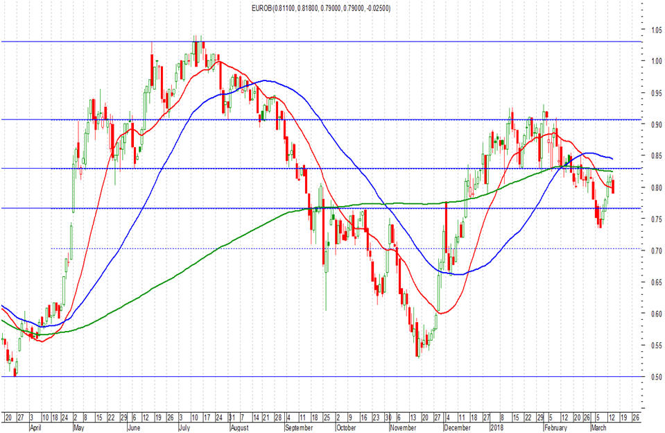 στα επίπεδα των 0,82 – 0,83 ευρώ (δοκιμάστηκαν δειλά τις