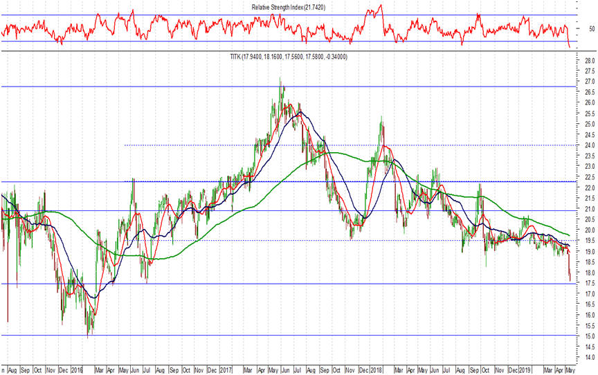 Με νέα πτώση και στο χαμηλό ημέρας (17,34 ευρώ, -1,34%) έκλεισε χθες η μετοχή, έχοντας ένα εντυπωσιακά αρνητικό σερί 9 συνεχόμενων πτωτικών συνεδριάσεων. Και κάπως έτσι και με την εταιρεία κατά τους τελευταίους μήνες να έχει απογοητεύσει μέχρι και τους πιο θερμούς οπαδούς της. Είναι χαρακτηριστικό πως από 01/01/09, ο ΤΙΤΚ βρίσκεται στο -11,25% και είναι η πρώτη σε πτώση μετοχή του FTSE 25!!!!