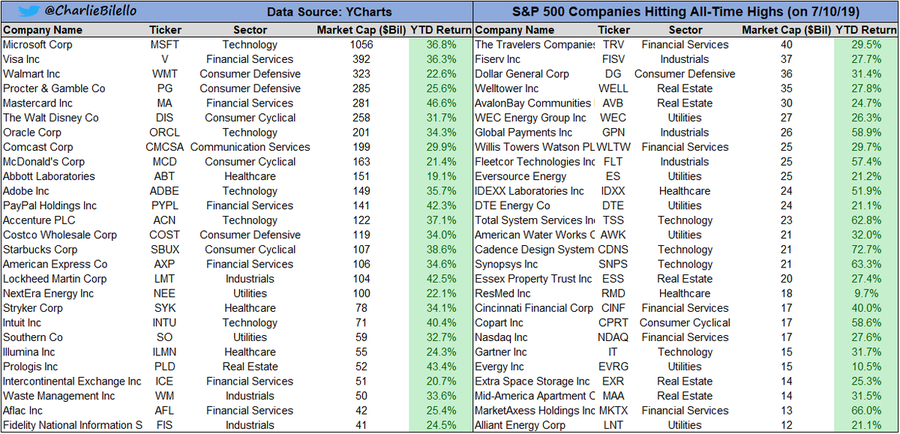με τα ιστορικά υψηλά του δείκτη, 54 από τις 500 μετοχές του