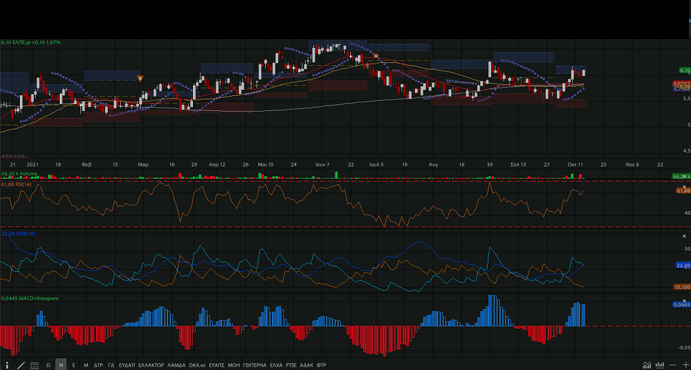 Στο υψηλό ημέρας, στα 6,10 ευρώ (+1,67%) έκλεισαν χθες τα
