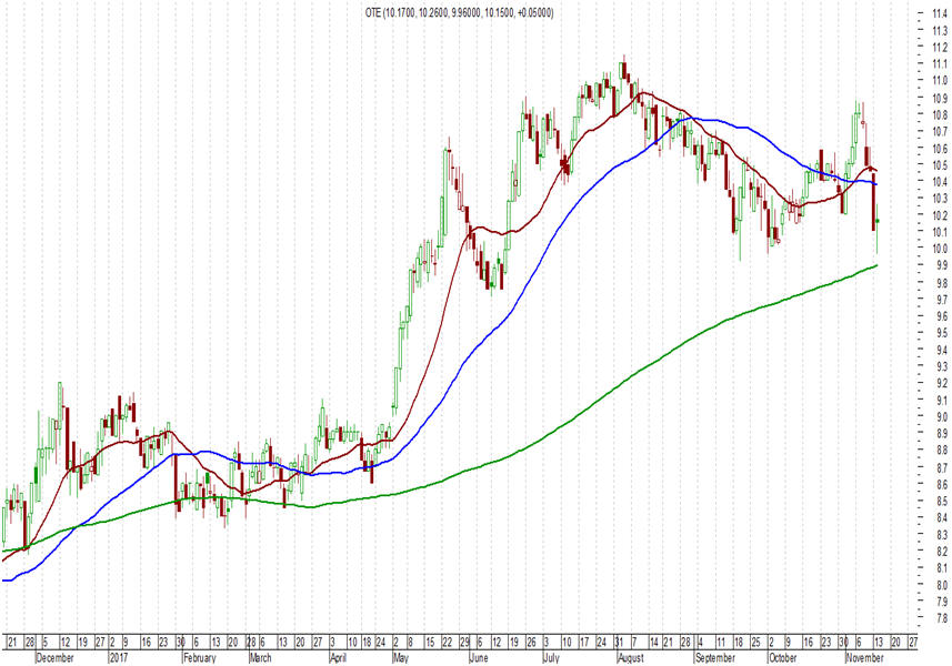 διαγραμματική εικόνα της μετοχής του ΟΤΕ. Το μεγάλο