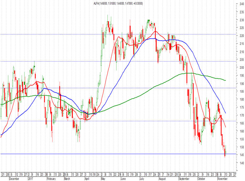 μετοχή της Alpha Bank (κλείσιμο 1,47 ευρώ, +2,08%), με