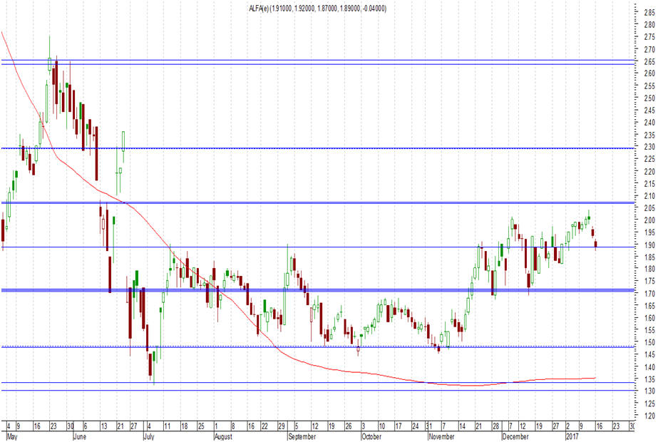 της Alpha Bank βρίσκεται στα επίπεδα των 2,23 ευρώ.