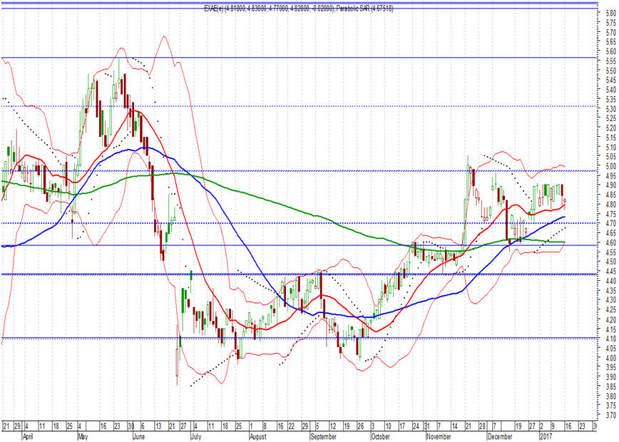 αντιστάσεις στα επίπεδα των 4,90 – 5,00 ευρώ, όπου προσφάτως