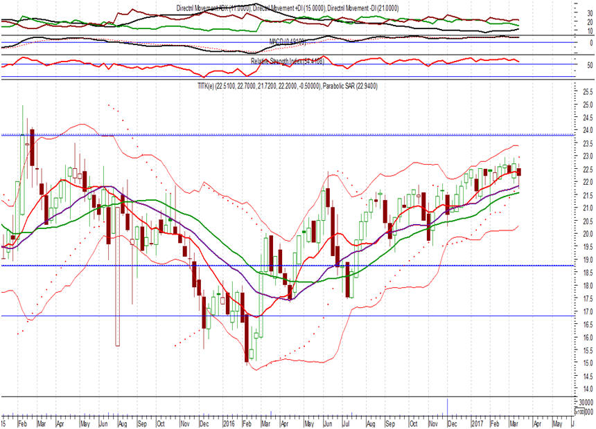 οριακά κέρδη 0,86% έκλεισε χθες η μετοχή του Τιτάνα (22,20