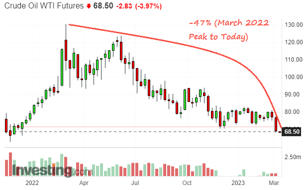 βαρέλι, 47% χαμηλότερα των περσινών υψηλών (130