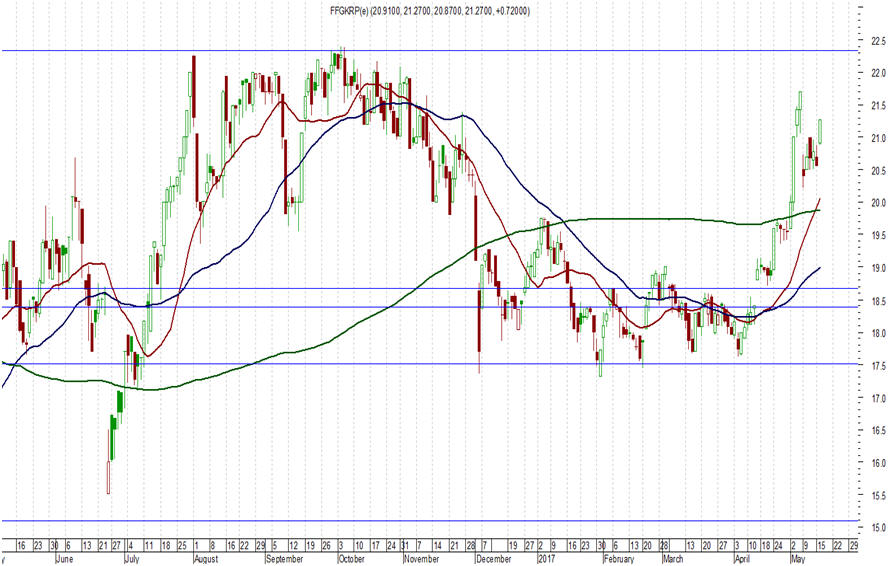 βελτιώνεται, με καλό κλείσιμο χθες στα 21,27 ευρώ (+3,50%)