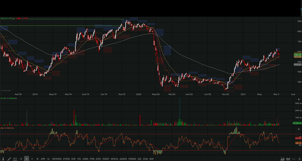 των 580 μονάδων. Χαμηλότερα οι επόμενες στηρίξεις είναι στα