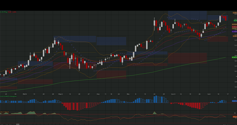 επόμενες ισχυρές στηρίξεις είναι στα επίπεδα των 5,80 και