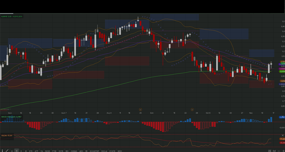 ευρώ, με υψηλότερες αντιστάσεις στα 3,30–3,40 και 3,50 ευρώ,