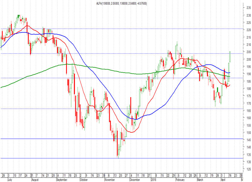 στηρίξεις της Alpha Bank είναι στα επίπεδα των 2,00 ευρώ, με