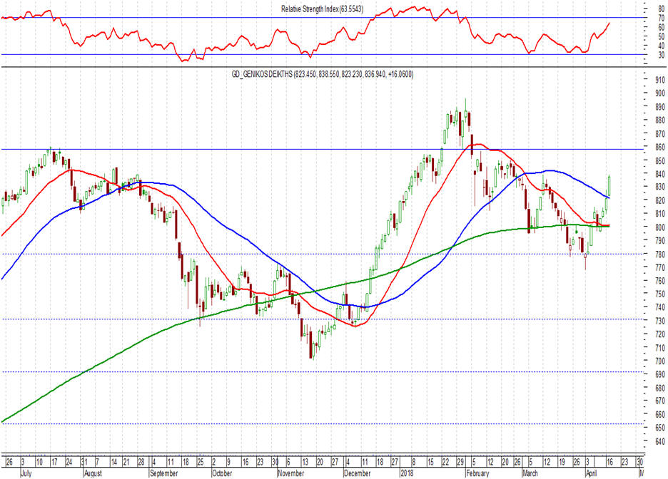 η παραμονή του δείκτη υψηλότερα των 825 – 830 μονάδων (κλείσιμο