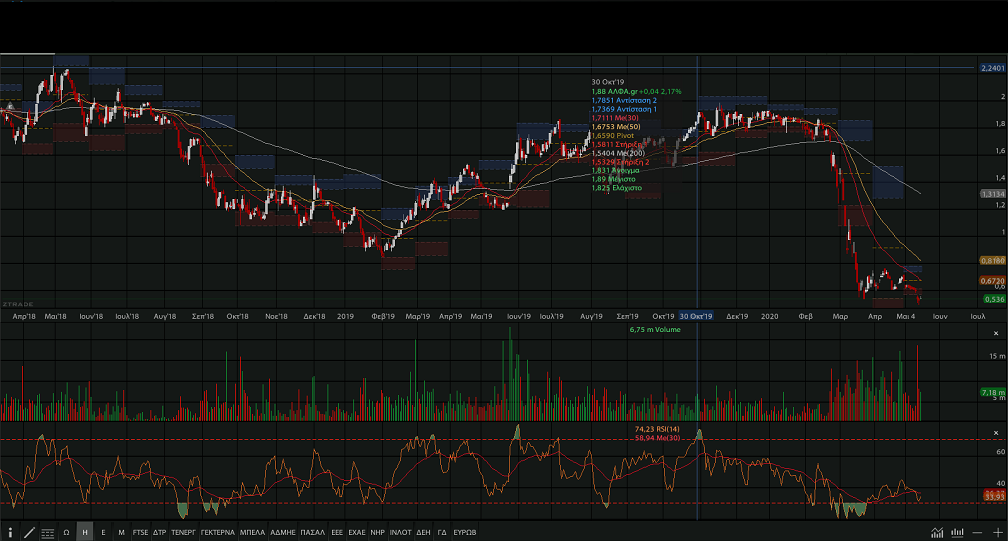 Στα 0,536 ευρώ, έκλεισε την Παρασκευή η μετοχή της ΑΛΦΑ, με