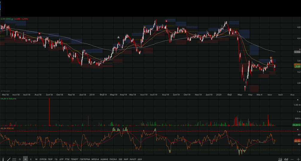 χθες έκλεισε στα 3,44 ευρώ, -1,29%. Διαγραμματικά λοιπόν, ο