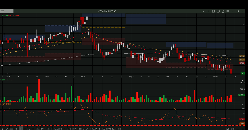 απώλειες έκλεισε χθες η μετοχή της Coca Cola, στα 28,13 ευρώ,