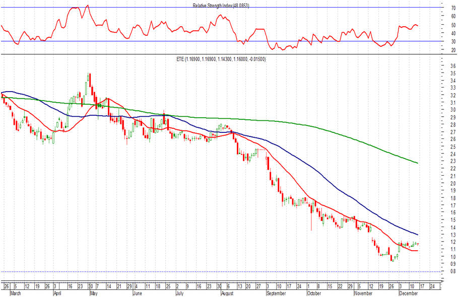 (-1,21%) έκλεισε χθες η μετοχή της ΕΤΕ (-64%