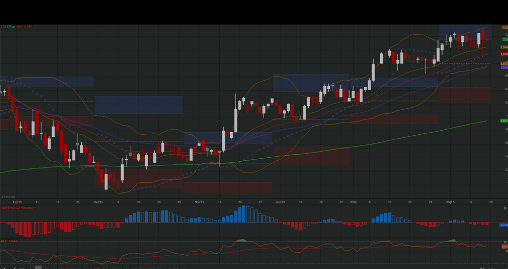 κλείσιμο την Παρασκευή στα 7,16 ευρώ, -0,14%. Διαγραμματικά,