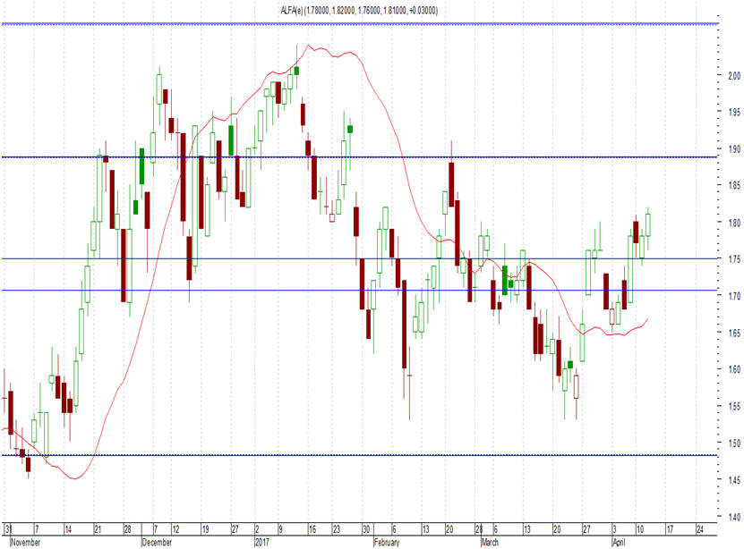 των 1,70 – 1,72 ευρώ, η μετοχή μπορεί να κινηθεί μέχρι τις