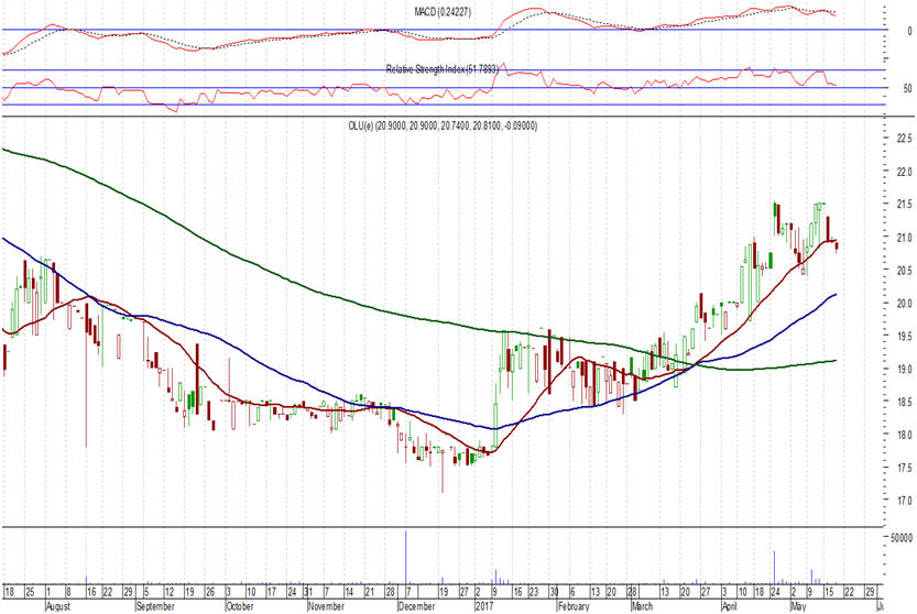 διαγραμματική εικόνα της μετοχής του ΟΛΘ. Και με βάση την