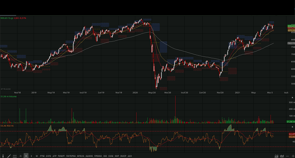 συνεχίζει να κινείται στα όρια των 900 – 910 μονάδων. Για να