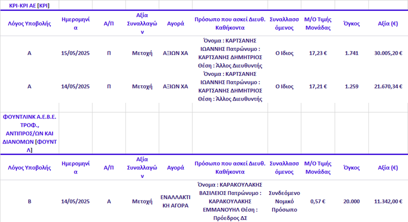 Γνωστοποιήσεις συναλλαγών |