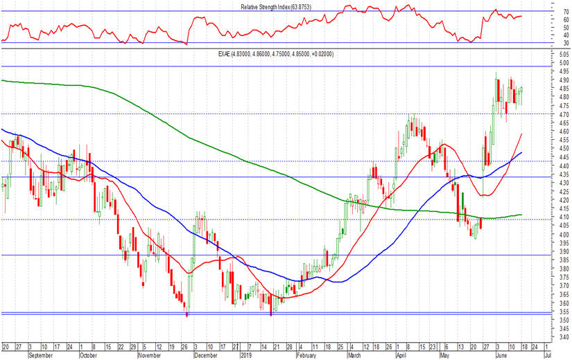 αντιστάσεις στόχος, στα 5,50 και 5,80 – 6,00 ευρώ.