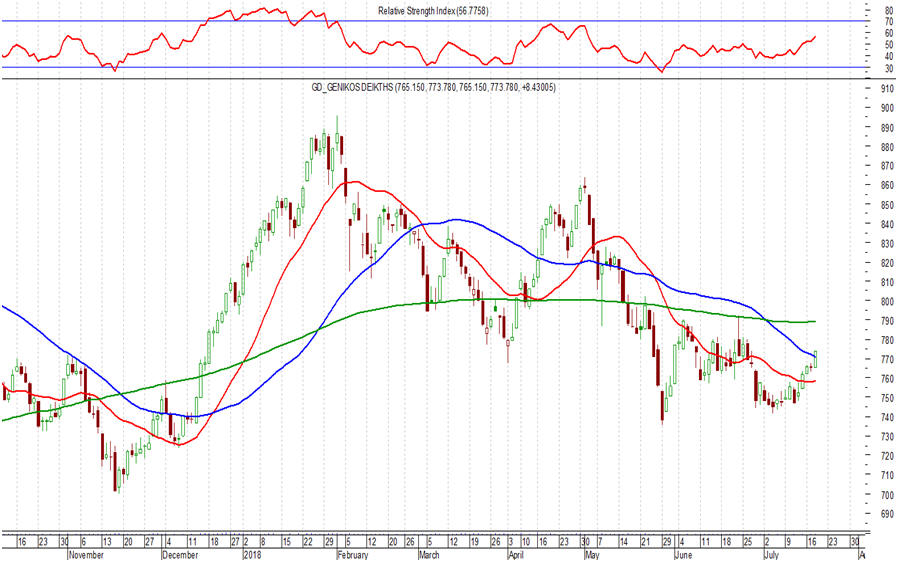 Όπως πάντως πολλές φορές έχουμε γράψει τις τελευταίες εβδομάδες – μήνες. Στα επίπεδα των 780 – 800 μονάδων και ελαφρώς υψηλότερα στις 810 μονάδες υπάρχει πλήθος αντιστάσεων. Και θέλουμε να είμαστε ειλικρινείς. Αν και σε αυτό το ρηχό χρηματιστήριο (όπως γράψαμε παραπάνω) με λίγους ξένους επενδυτές να ελέγχουν την αγορά, τα πάντα είναι πιθανά. Εντούτοις Μας φαίνεται πολύ δύσκολο το Χ.Α. να κάνει την υπέρβαση και με τζίρους μικρότερους των 50 – 60εκ ευρώ ημερησίως (πόσο μάλλον τα ούτε 30εκ ευρώ που κάνει κατά μέσο όρο το Χ.Α. το καλοκαίρι) να έχουμε διάσπαση των προαναφερθέντων πολύ ισχυρών αντιστάσεων. Τώρα ανάμεσα σε άλλα, αν αρχίσουμε να βλέπουμε και αύξηση του τζίρου, θα είμαστε εδώ να το αναφέρουμε και να εξετάσουμε τα νέα δεδομένα.