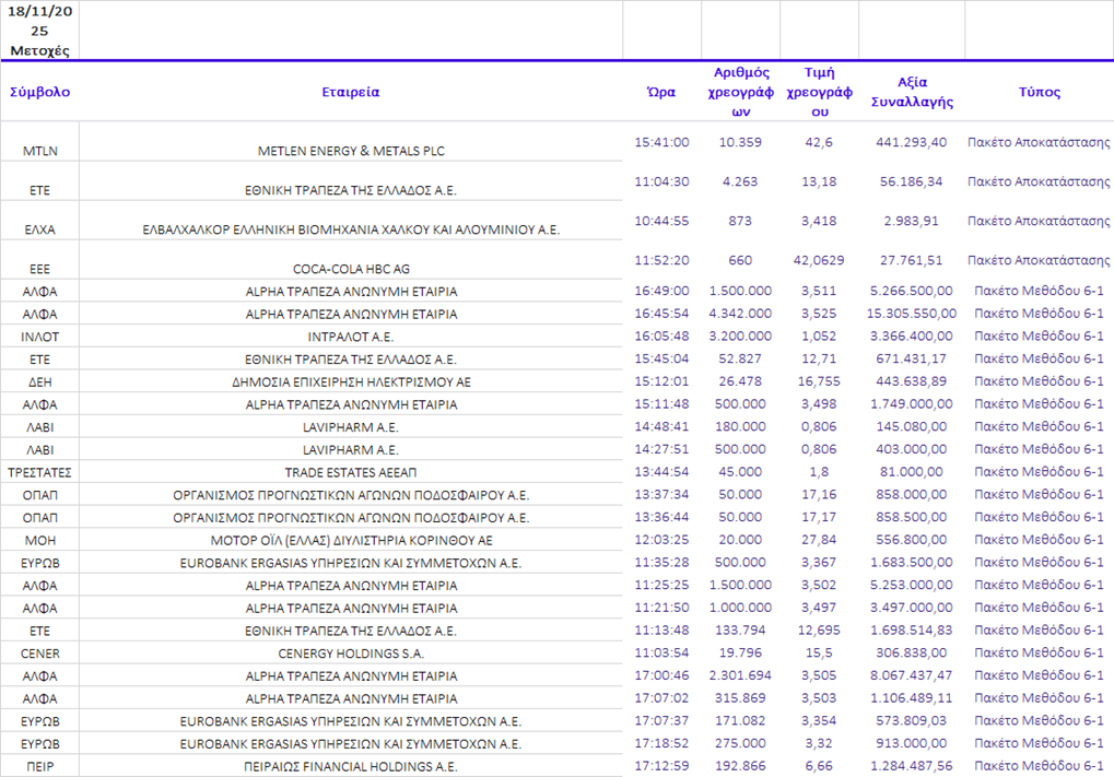 τις αποδόσεις των τριών βασικών δεικτών για τον Νοέμβριο. Με