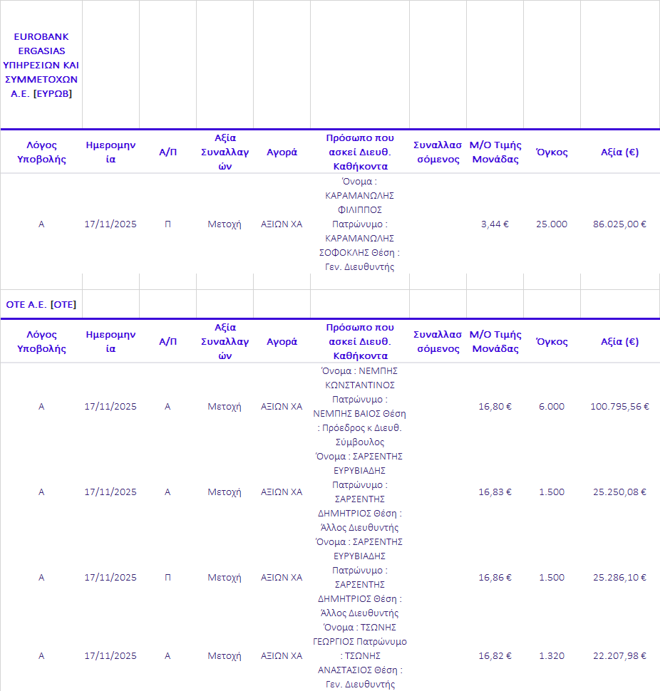 Γνωστοποιήσεις συναλλαγών |