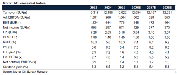 υπολογισμούς της Euroxx, η Motor Oil στα σημερινά επίπεδα των 26