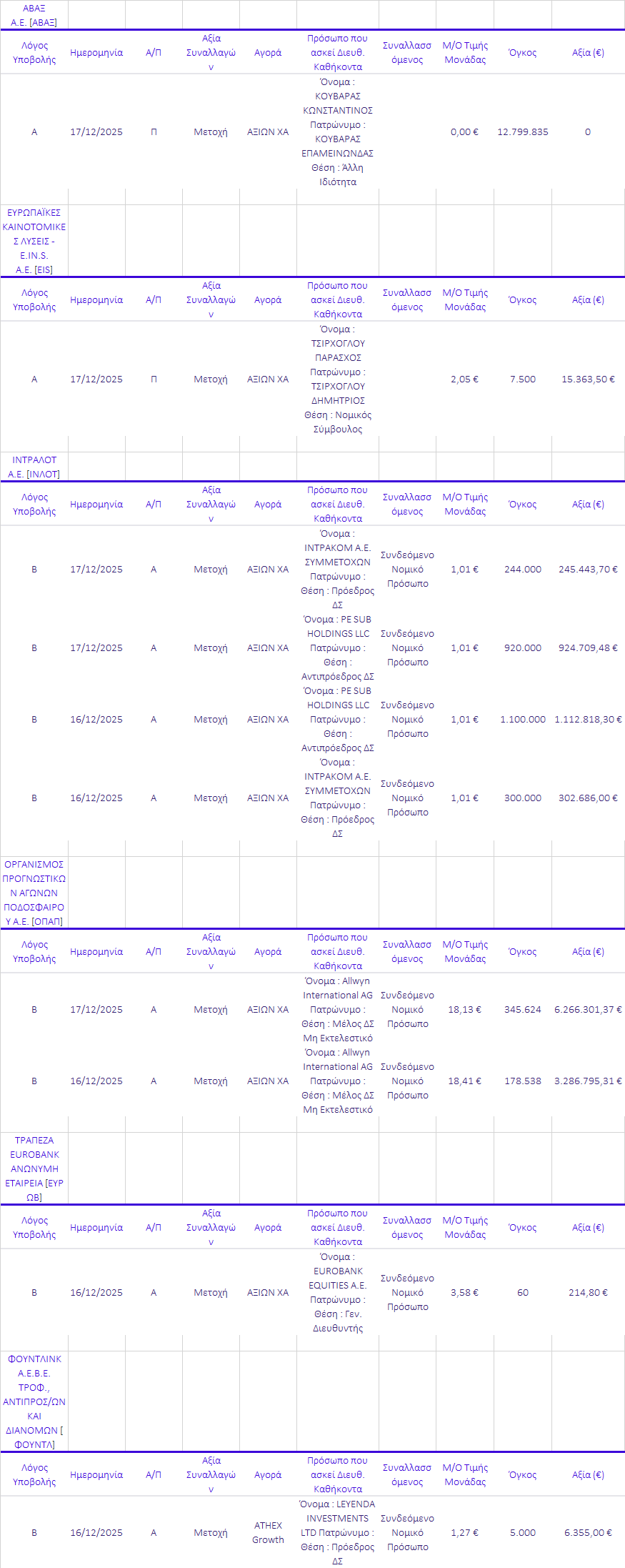 Γνωστοποιήσεις συναλλαγών |