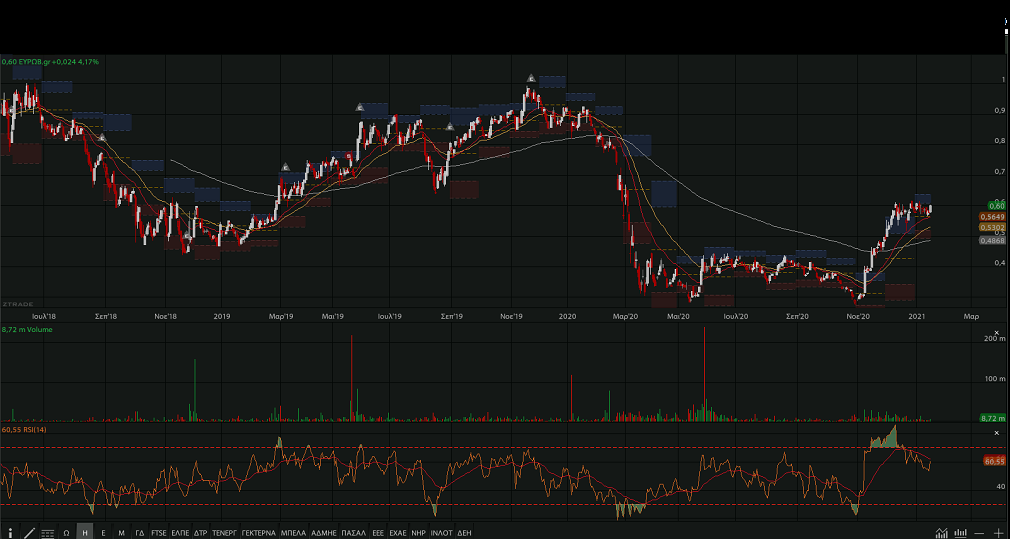 παραμονή της μετοχής υψηλότερα των 0,55 – 0,56 ευρώ (ακόμη
