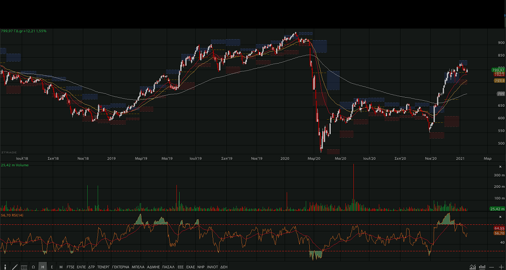 810 μονάδων, στις 799,97 μονάδες, +1,55%. Και φυσικά ο