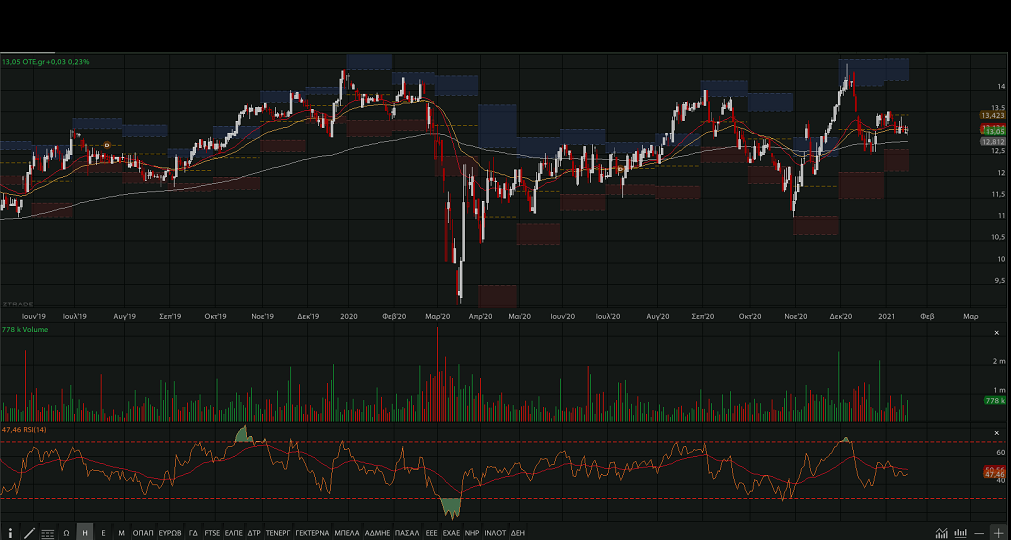 0,23% έκλεισε χθες ο ΟΤΕ, στα 13,05 ευρώ, με το ζητούμενο σε αυτή
