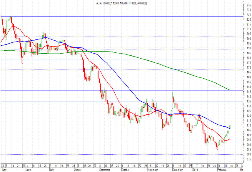 Αν και με οριακά κέρδη χθες (1,105 ευρώ, +0,45%, χαμηλό ημέρας, υψηλό ημέρας τα 1,16 ευρώ το πρωί) το 8 στα 8 έκανε χθες η μετοχή της Alpha Bank. Και με τη διαγραμματική εικόνα να βελτιώνεται ένα είναι το πραγματικά μεγάλο στοίχημα. Η μετοχή της Alpha Bank να παραμείνει υψηλότερα των 1,06 – 1,07 ευρώ. Και με βάση αυτήν την παραμονή, η μετοχή μπορεί να κάνει μια μεγάλη υπέρβαση. Μπορεί να μπει σε ένα ανοδικό κανάλι, πιθανόν περίπου 30% μέχρι τις επόμενες ισχυρές αντιστάσεις στα επίπεδα των 1,44 – 1,47 ευρώ.