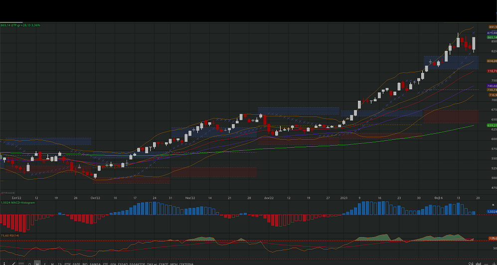 την Παρασκευή στις 865,14 μονάδες, με μεγάλα κέρδη 3,36%,