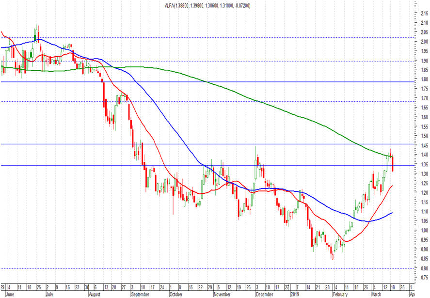 Και σε σχέση με τα επιμέρους σχόλια για την πορεία κυρίως των τραπεζικών μετοχών. Στις δικές της πολύ ισχυρές αντιστάσεις (1,38 – 1,39 ευρώ) είχε βρεθεί η μετοχή της ΑΛΦΑ, με κλείσιμο στα 1,31 ευρώ, με μεγάλη πτώση 5,21%. Και με την τελευταία κατοχύρωση κερδών να είναι φυσιολογική, θα λέγαμε πως μπορεί να συνεχιστεί μέχρι τα επίπεδα των 1,20 – 1,22 ευρώ (πολύ ισχυρές στηρίξεις). Χαμηλότερα, οι επόμενες ισχυρές στηρίξεις είναι στα 1,14 και 1,04 – 1,05 ευρώ.  Και εννοείται ότι ούτε θέλουμε να σκεφτούμε πως η μετοχή θα έχανε όλες αυτές τις στηρίξεις, αφού και πάλι θα μιλούσαμε για μια πλήρως αρνητική διαγραμματική εικόνα. Μέχρι και για νέα ιστορικά χαμηλά.