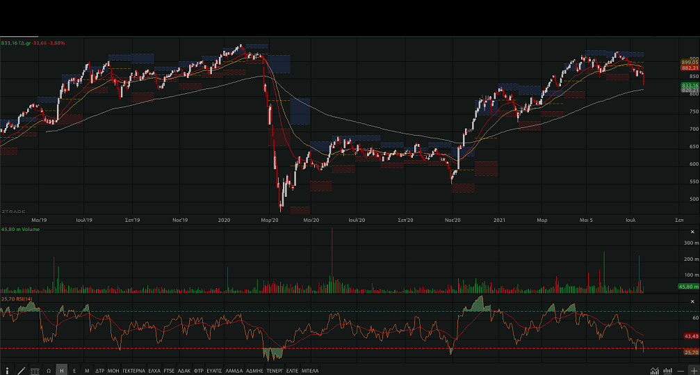 επόμενες ισχυρές στηρίξεις στις 820 – 810 ή και 790 – 800