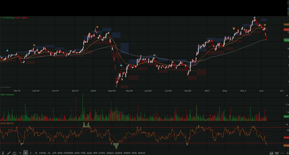 συναγερμός και για τον ΟΠΑΠ που έκλεισε χθες στα 11,10 ευρώ,