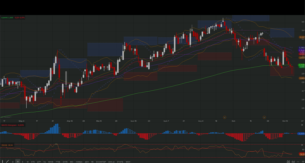 σε μια σειρά κρίσιμων στηρίξεων στα επίπεδα των 3,00, 2,95 και